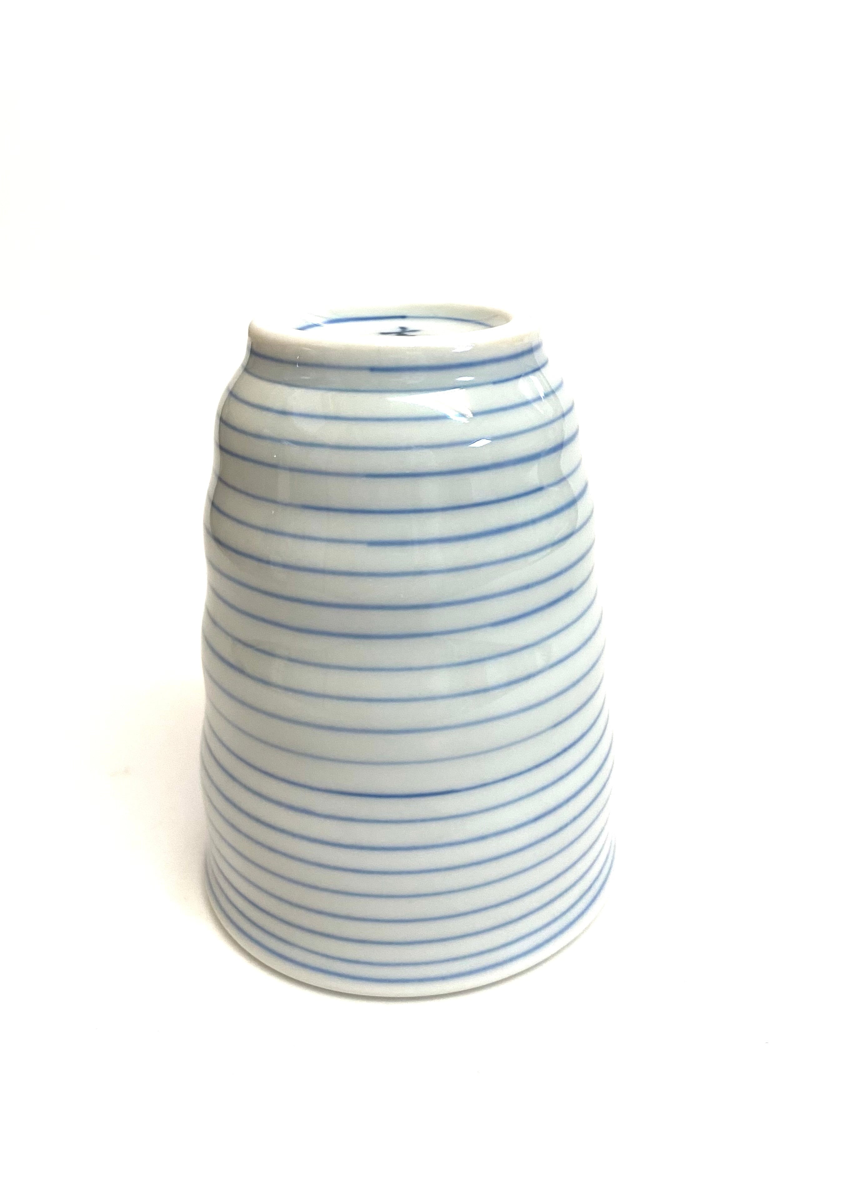 こますじ深コップ(大)は、手描きで一本一本引いたこますじ模様が特徴的です。深めのデザインに周りのウェーブのラインが手になじみ、とても持ちやすい商品です。